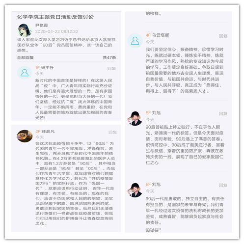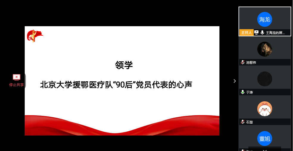 活动开始由于涛同志向与会党员介绍了北京大学援鄂医疗队的相关背景情况和其中“90后”党员代表王奔、吴超接受采访时表达的抗疫心声,真实生动地展现了青年党员的先锋模范精神。