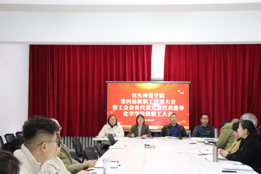 2024年3月3日下午,化学学院在齐志楼317会议室隆重举行基层工会换届选举和第四届教职工代表大会暨工会会员代表大会(以下简称“双代会”)代表选举教职工大会。