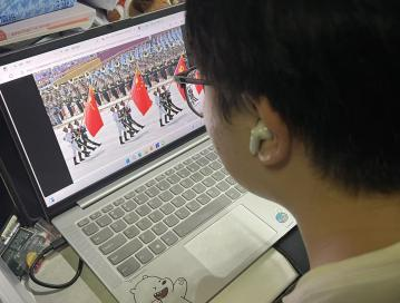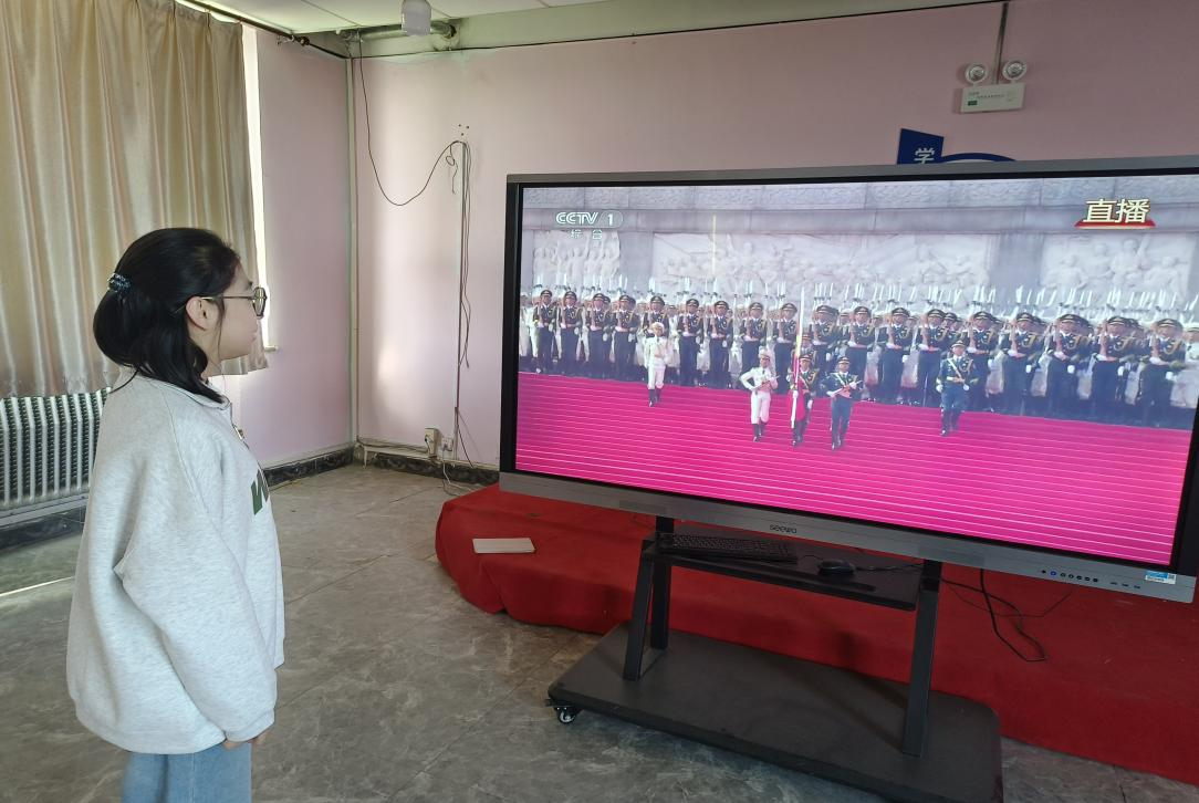 当日上午,9时整,阅兵仪式正式启动,60名标兵迈着精准铿锵的步伐进驻岗位,瞬间点燃学生党员的敬畏之心。随后,徒步方队气势如虹,每一步都承载着对先烈的缅怀与对历史的铭记;装备方队铁甲列阵,各类先进装备集中亮相,彰显新时代中国国防实力与维护和平的坚定决心;空中梯队呼啸而过,战机编队划出壮美航迹,诠释着守护国家主权与领土完整的使命担当。观看过程中,党员们全程专注,不时为震撼场面动容,深刻体会到“落后就要挨打、强大才能自强”的历史真理,以及和平生活的来之不易。