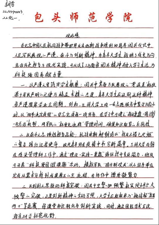 通过沉浸式观礼与深度交流,进一步筑牢党员理想信念根基,增强使命担当意识,强化党员思想政治建设。下一步,化学与能源化学学生党支部将持续创新党建活动形式,将红色教育与专业培养深度融合,引导学生党员在学思践悟中坚定理想信念,在知行合一中勇担时代使命.