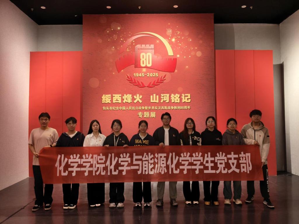 为深入开展党史学习教育,弘扬伟大抗战精神,增强爱国主义教育和国防意识,2025年9月27日,化学学院应用化学学生党支部、化学与能源化学学生党支部组织党员前往包头博物馆,参观了《绥西烽火 山河铭记——包头市纪念中国人民抗日战争暨世界反法西斯战争胜利80周年》专题展。