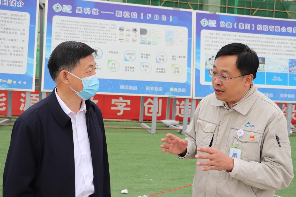 会后,协鑫科技助理副总裁、鑫元副总指挥李克存和总经理助理薛智栋陪同参观了厂区在建工地和员工工作生活环境。
