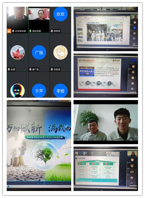 从3月22日开始,学院正式启动为期一个半月的企业线上招聘宣介会(企业归属地为板块),招聘企业涵盖新能源、新材料、医药、煤化工等行业,共52家企业参与此次线上招聘活动。截至24日,学院共组织了包括新特能源、鄂尔多斯电力冶金集团、美科硅能源、大全新能源、鑫元硅材料、弘元新材等企业在内的6场线上招聘宣介会,学院网格化成员全程参会。