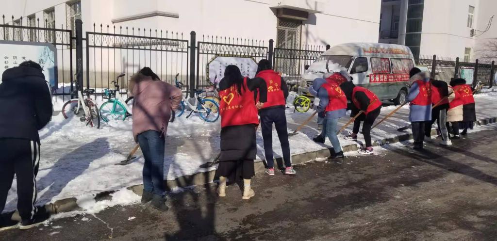 2019年12月15日,一场大雪覆盖了整个校园。为了尽快消除道路积雪给全校师生带来的诸多不便,化学学院青年志愿者协会本着“服务校园”的宗旨,于12月16日和17日分别组织同学们清理了齐志楼北侧和南院东墙外的积雪。
