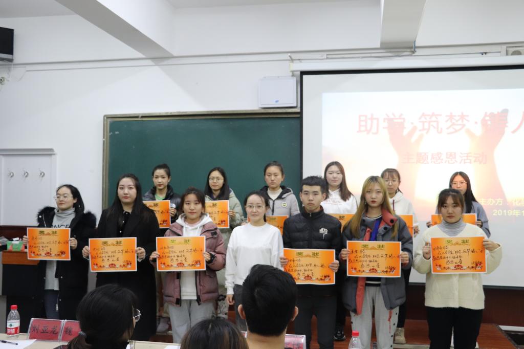滴水之恩,当涌泉相报。此次活动为同学们进行了一次感恩的洗礼,使同学们在对助学有了更深层次了解的同时,也认识到感恩不仅是一种心态,更是一种道德和品质。希望感恩之风可以在校园内传递,吹遍我们身边的每个角落。(化学学院)