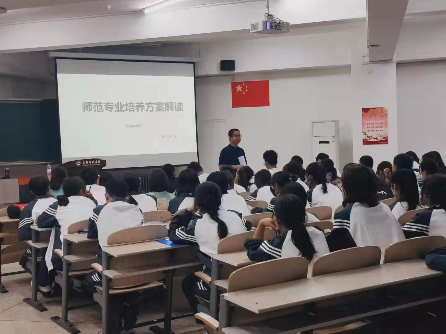 为了让新生更好的做好大学四年学习规划,化学学院化学系主任马学林老师和应化系主任孙鹤老师于2021年9月16日晚分别对2021级新生化学专业和应化专业学生进行了培养方案解读,为2021级新生做好课程规划上了教育“第一课”。