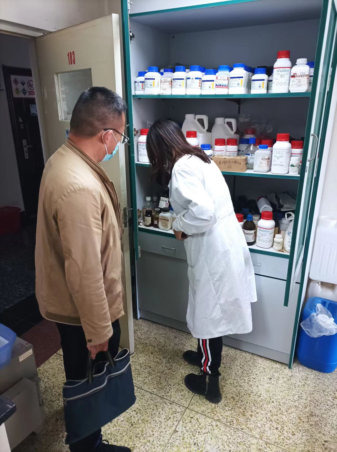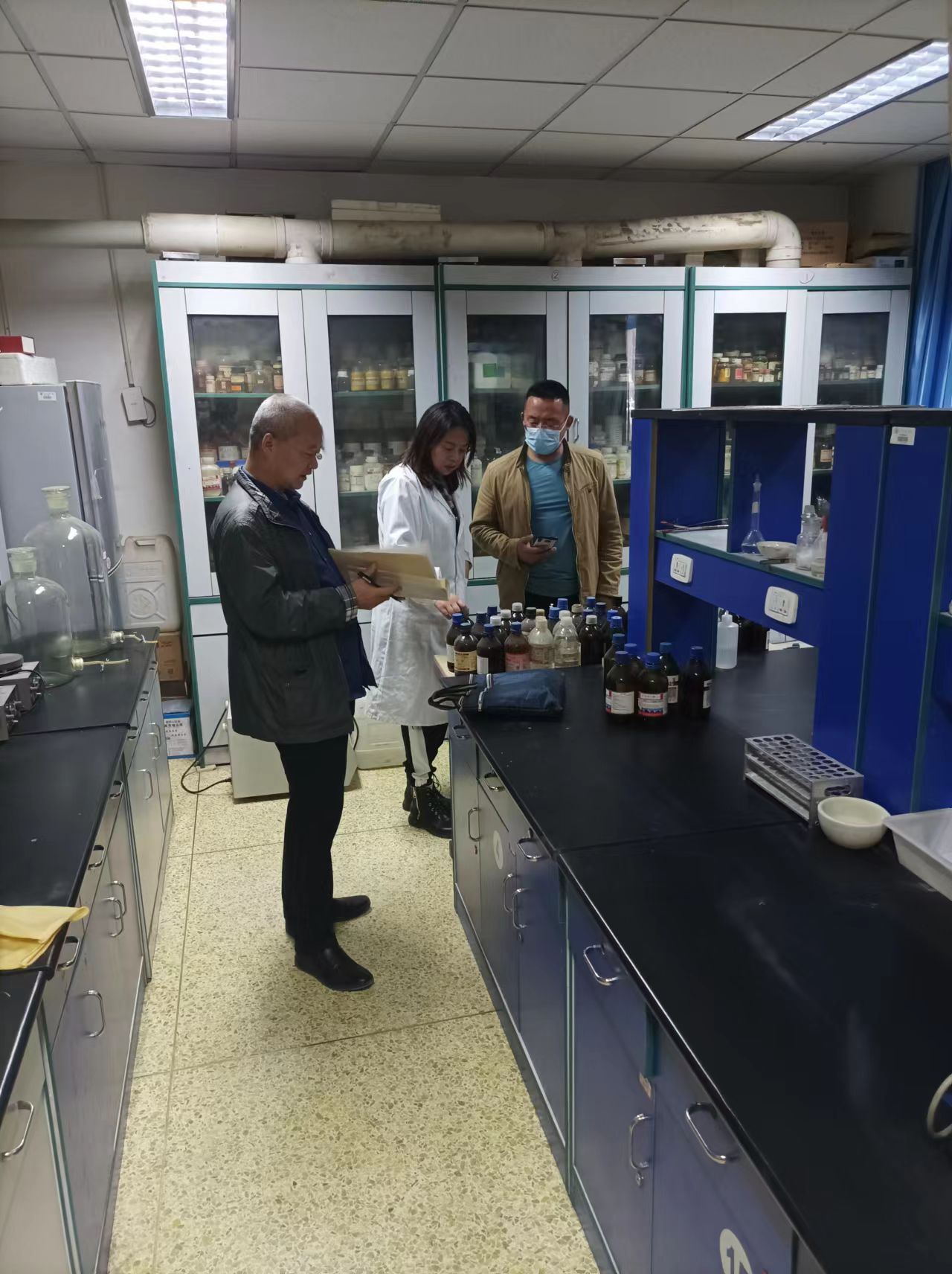为全面落实《教育部办公厅关于开展加强高校实验室安全专项行动》和《内蒙古自治区教育系统危险化学品安全风险集中治理工作方案》的通知,坚决防范遏制实验室安全事故发生,化学学院于4月15日下午,化学学院副院长张骁勇、实验中管理人员(雍胜利、刘莉、张高峰)展开实验室安全大检查。