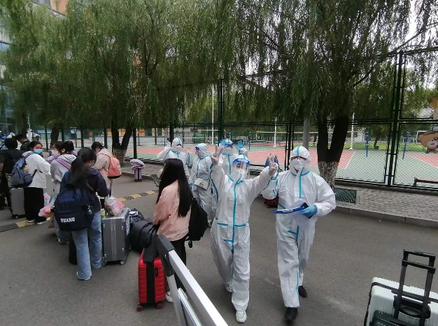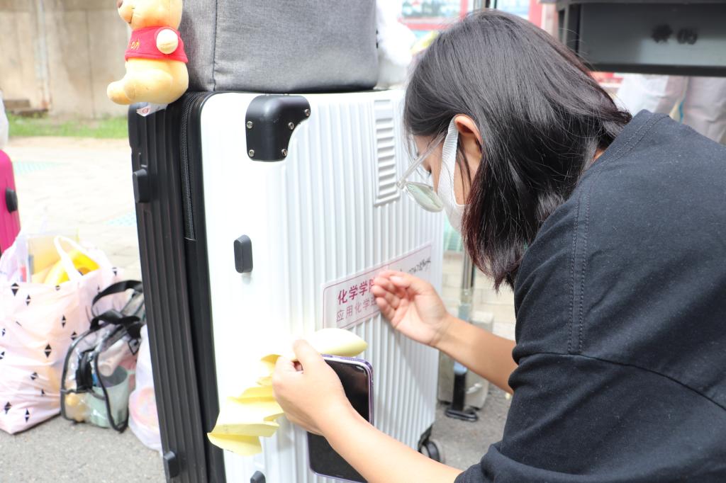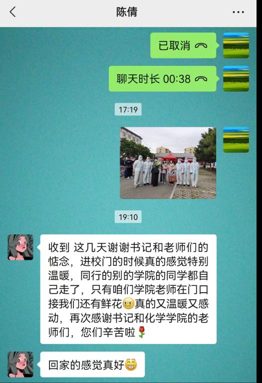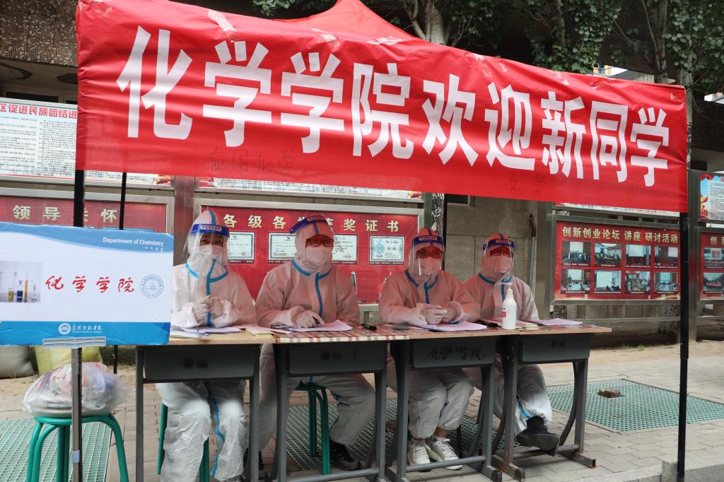 学院教师代表们早早在校门口等候,迎接同学们开心“回家”,并安排专人陪护至校医院和宿舍办理相关手续。(化学学院)