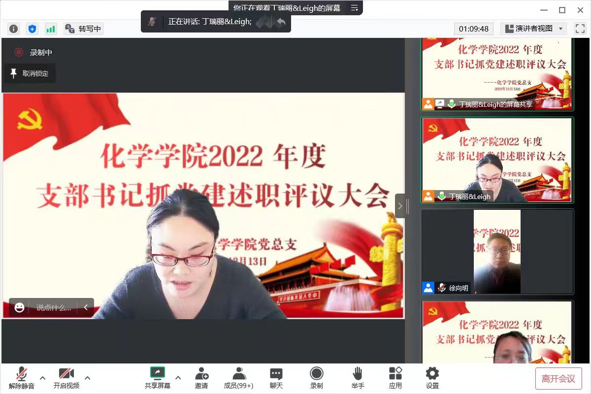 根据《党委组织部关于做好2022年度党组织书记抓基层党建述职评议考核工作的通知》要求,化学学院党总支于2022年12月13日下午15:00在腾讯会议召开党支部书记抓党建述职评议大会。化学学院党总支委员、各党支部书记、全体教工党员教师和学生党员参加了会议。会议由党总支书记李建军主持。