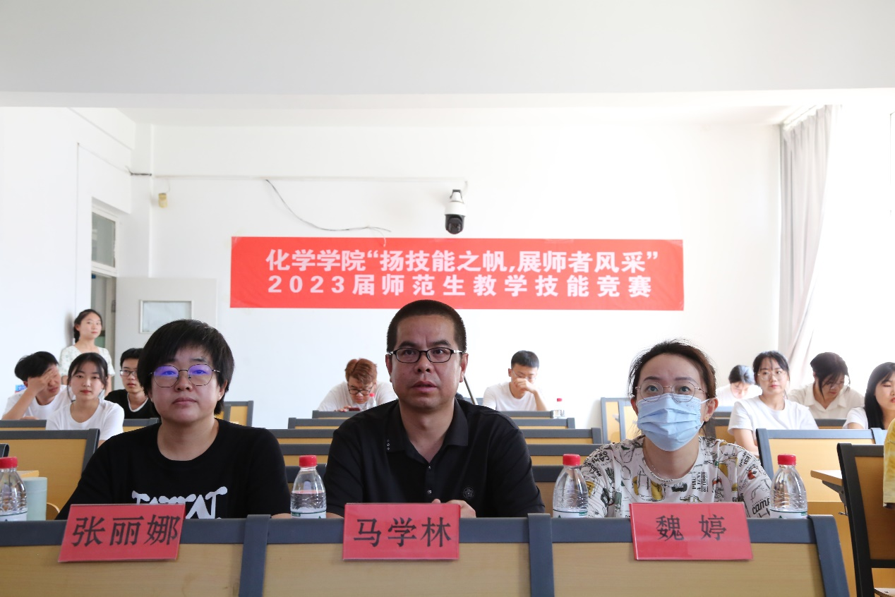 化学系主任马学林博士和魏婷老师、张丽娜老师担任本次竞赛的评委。比赛现场,每位参赛选手通过模拟教学、教学案例分析等环节,展示了扎实的专业技能。评委老师分别对每位选手进行了点评并就存在的不足给予指导。教学技能竞赛不仅检验了同学们的专业能力,也提升了同学们的现场应变能力。最终评选出一等奖一名、二等奖两名、三等奖三名和优秀奖若干名。