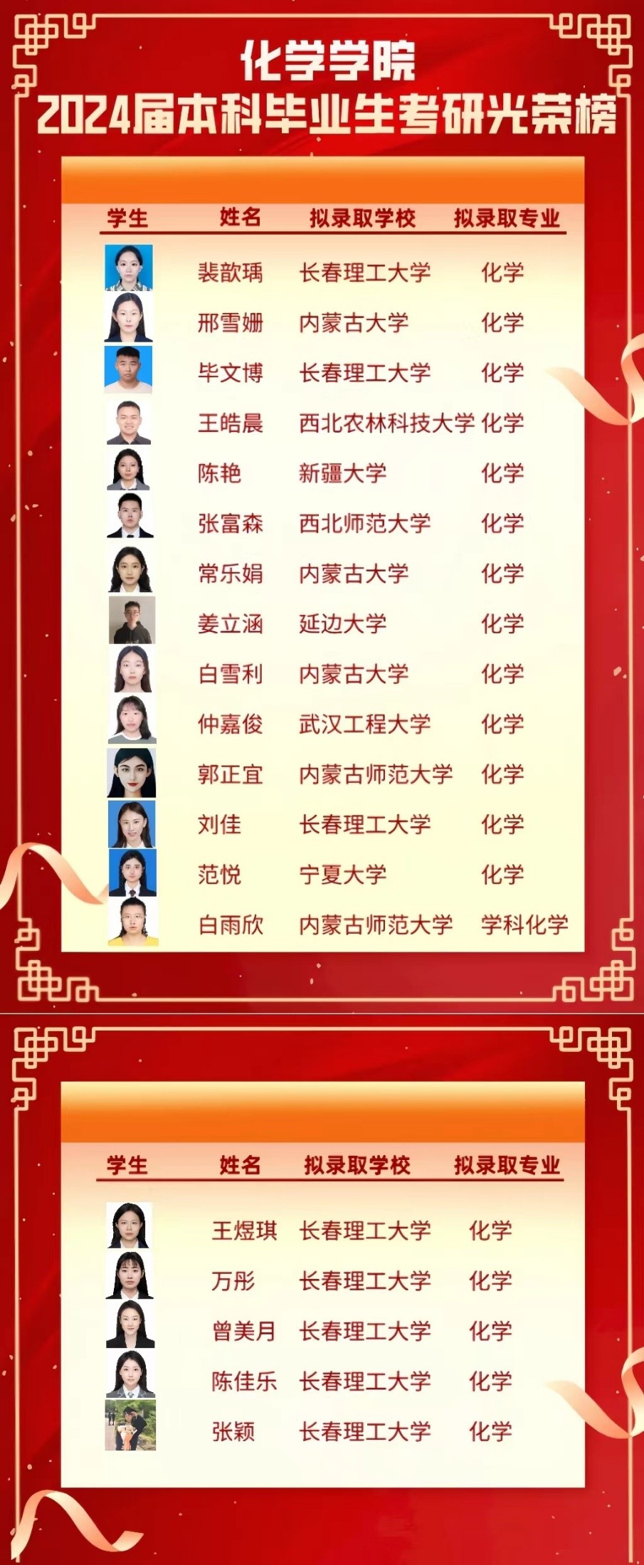 星光不负赶路人,天道酬勤佳音来。2024年硕士研究生招生考试尘埃落定,化学学院2024届考研学子耐住凛冽寒风,守住内心,终于守得云开见月明,在2024届考研中取得佳绩。