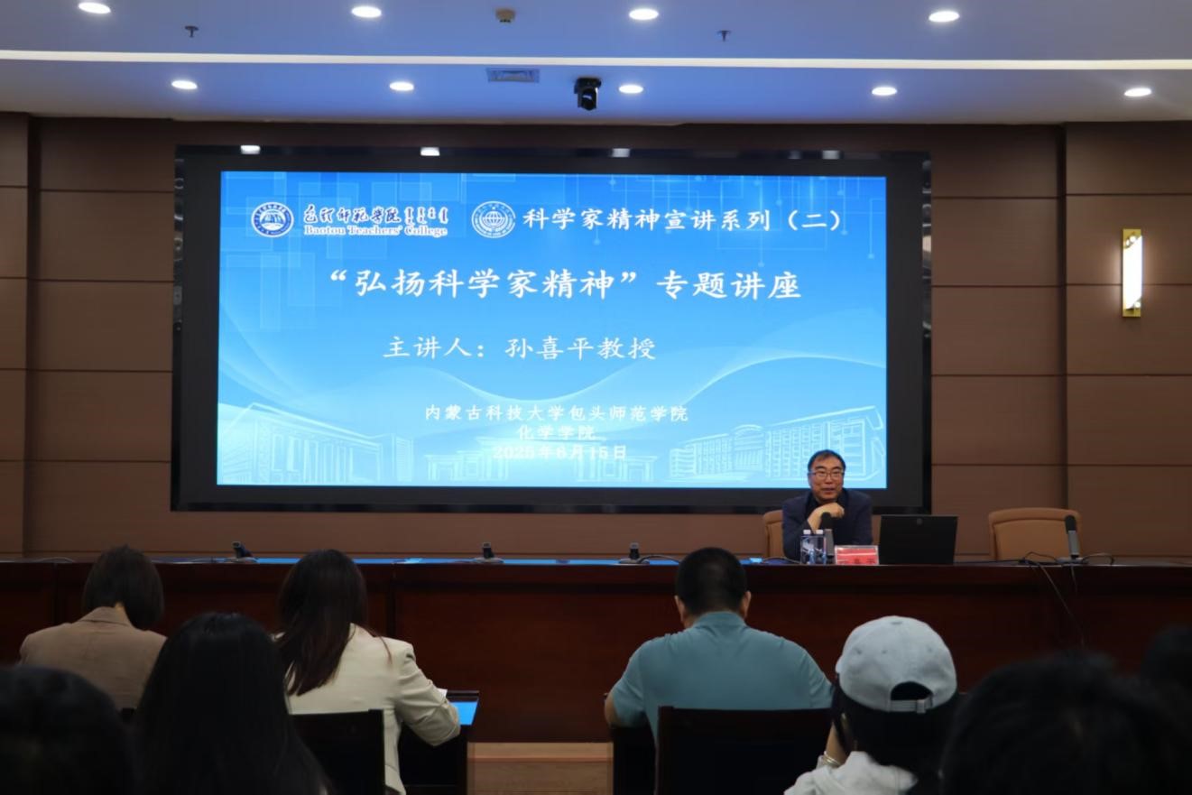 讲座中,孙教授以“坚持”“感恩”“合作”“责任”“突破”等为关键词,结合个人成长经历和创办企业的人生历程,深情讲述了自己与稀土结缘的科研人生。从1987年毕业于内蒙古大学化学系稀土专业,到白手起家创立金蒙稀土有限责任公司等多家企业;从带领团队攻克稀土分离技术难题,到推动磁性材料产业化应用,孙教授用三十余年的坚守诠释了科学家精神的深刻内涵。在企业发展过程中,他始终将技术创新作为核心驱动力,先后获得“内蒙古自治区劳动模范”等荣誉称号,实现了从实验室研究到产业落地的跨越式发展。