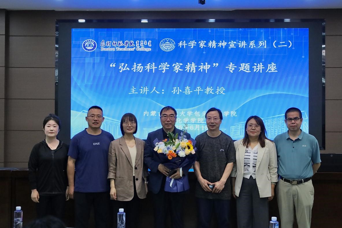 为深入学习贯彻党的二十大精神,进一步弘扬新时代科学家精神,6月15日,化学学院特邀我校兼职教授、包头市金蒙稀土有限责任公司董事长孙喜平教授作专题报告。包头市金蒙汇磁材料有限责任公司总工程师王强作为特邀嘉宾出席活动。报告会由化学学院党总支书记张锐主持,学院领导班子成员、辅导员及150余名师生代表参加活动。