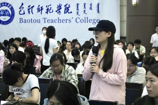 讲座开始前,获得“金蒙稀土奖(助)学金”的学生代表向孙喜平教授献上鲜花,表达对孙教授设立奖助学金、助力学子成长的诚挚谢意。孙教授勉励同学们珍惜学习机会,打好专业基础,将来为国家科技发展贡献力量。