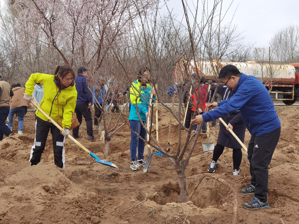 春风拂绿,万象更新,2021年4月2号下午14:30,化学学院教师来到包头市赛汗塔拉植树点,同工作人员一起参加了义务植树活动,人人爱绿护绿,共同建设人与自然和谐共生的美丽包头