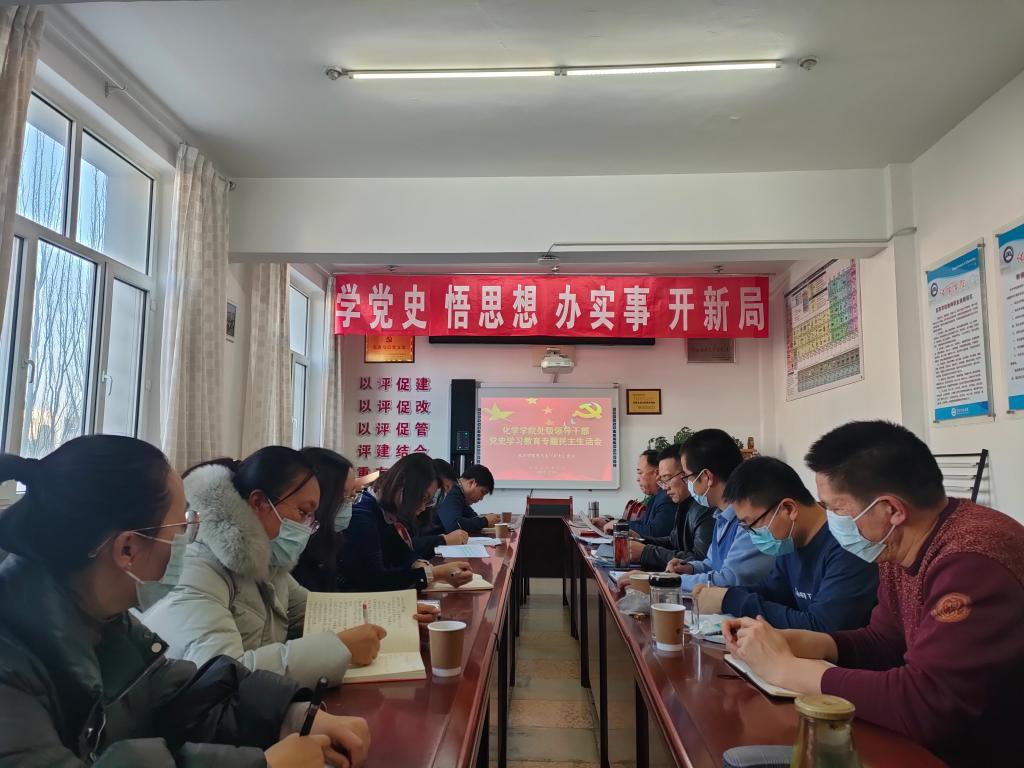 2022年1月13日下午,化学学院党总支在齐志楼320会议室召开处级领导干部党史学习教育专题民主生活会。校党委副书记、党史学习教育领导小组副组长、第一督导组组长施纪华同志和校党委委员、宣传部部长、第一督导组副组长呼禾同志出席会议。学院班子成员参加会议,党总支成员、民主党派代表、科级及内设机构负责人和工会代表等同志列席会议。会议由学院党总支书记李建军同志主持。