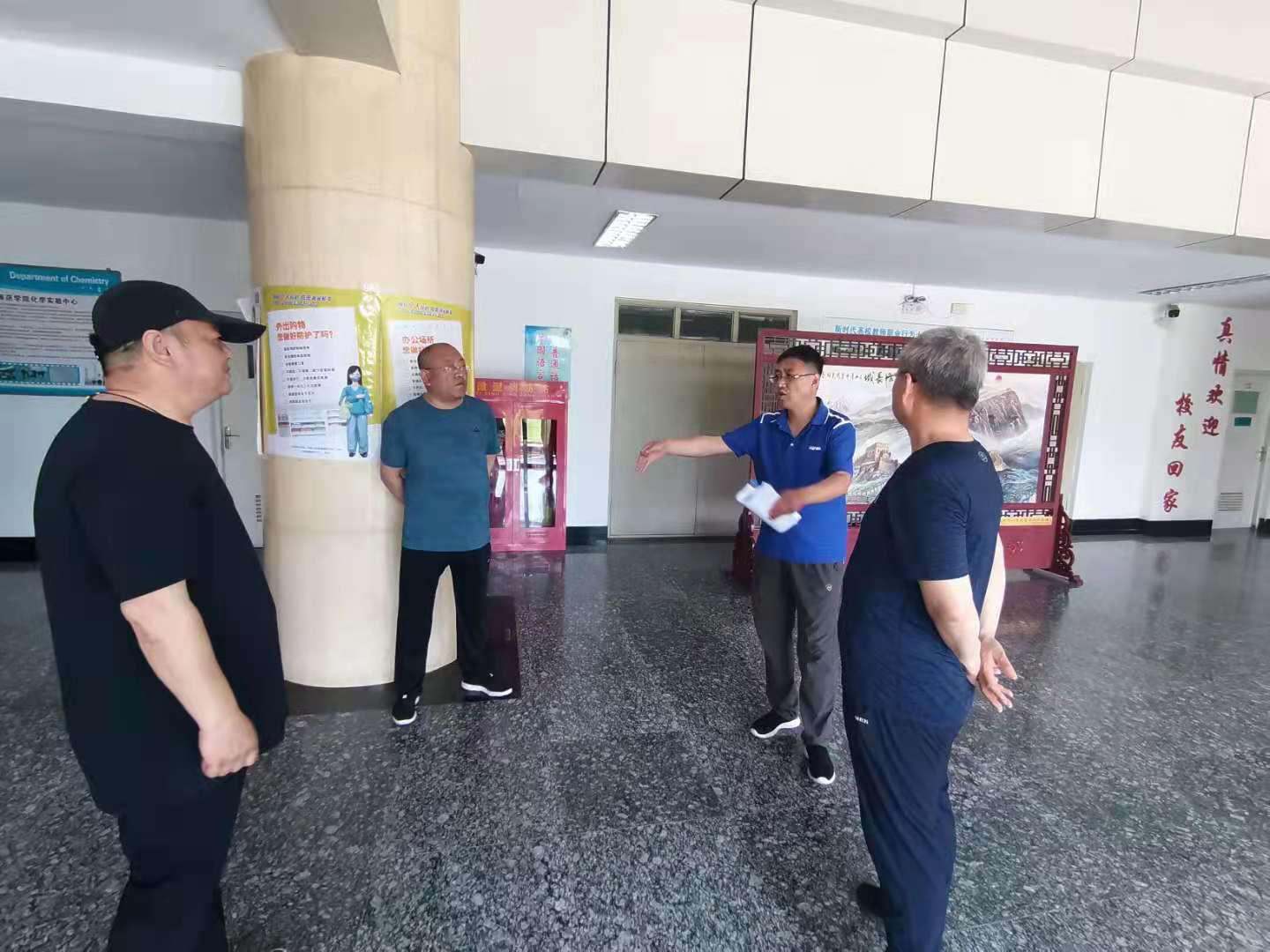 端午节前夕,化学学院副院长张骁勇、实验中心主任雍胜利、实验中心工作人员张高峰、刘路,对化学学院实验室存在的安全隐患进行了检查,对查出的隐患进行了整改。同时与学校实验室管理中心、保卫处就化学学院累积的废液及地下药品库、107药品库中库存的过期及无标签药品进行了集中清查,经协商拟联系有资质商家进行处理。