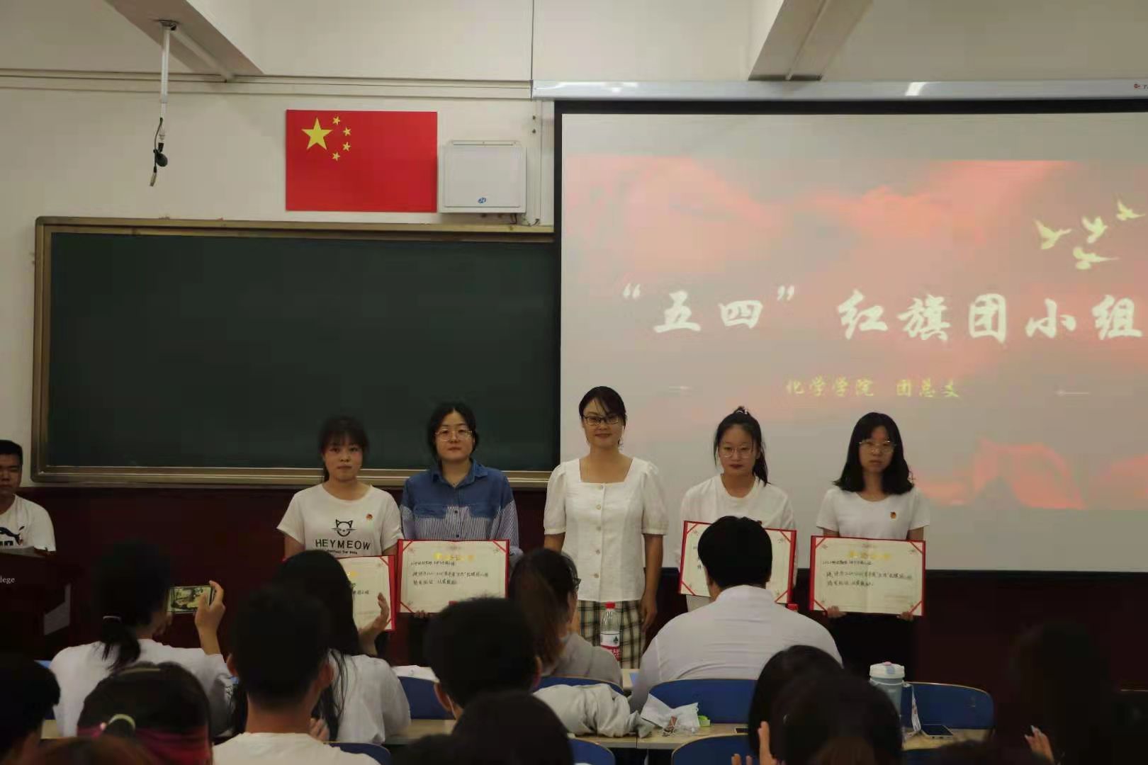 最后,由丁老师代表团总支对2020-2021学年度“五四”红旗团支部、“五四”红旗团小组、优秀共青团干部、优秀青年志愿者、优秀共青团员和优秀团日活动分别进行了表彰。