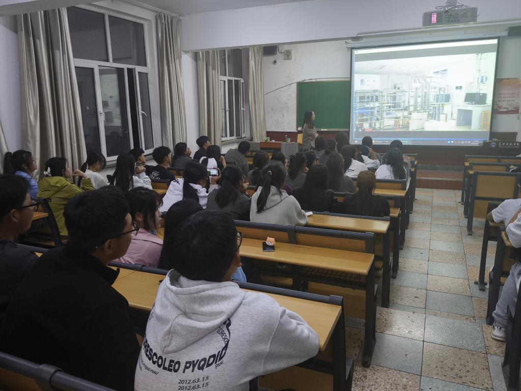 本次活动分为两部分:专题讲座部分由袁博老师负责,在讲述学院发展历史的基础上,详细阐述学校“博学,笃行,齐志,恒德”校训历史内涵和知名校友的励志事迹,介绍学院的师资力量、名师教授、科研成果、荣誉奖项、对外交流合作成果及大型仪器设备等情况,加深同学们对学院的全面了解。讲解最后,以视频的形式呈现了往届毕业生对新生的殷勤期望和祝福。
