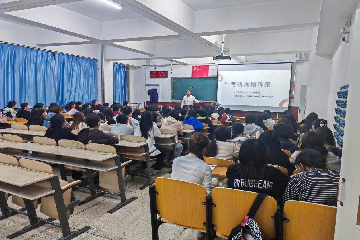 为提高专业知识与技能水平,求学深造以攀科学高峰,并在当前日趋严峻就业形势下增强自身就业竞争力,考研成为许多本科生毕业去向的选择之一。应广大学生需求,化学学院于2023年10月19日晚7点在博学楼400举办了考研规划讲座。特邀我校马克思主义学院张雪瑞老师主讲,2021、2022级全体在校学生参加。