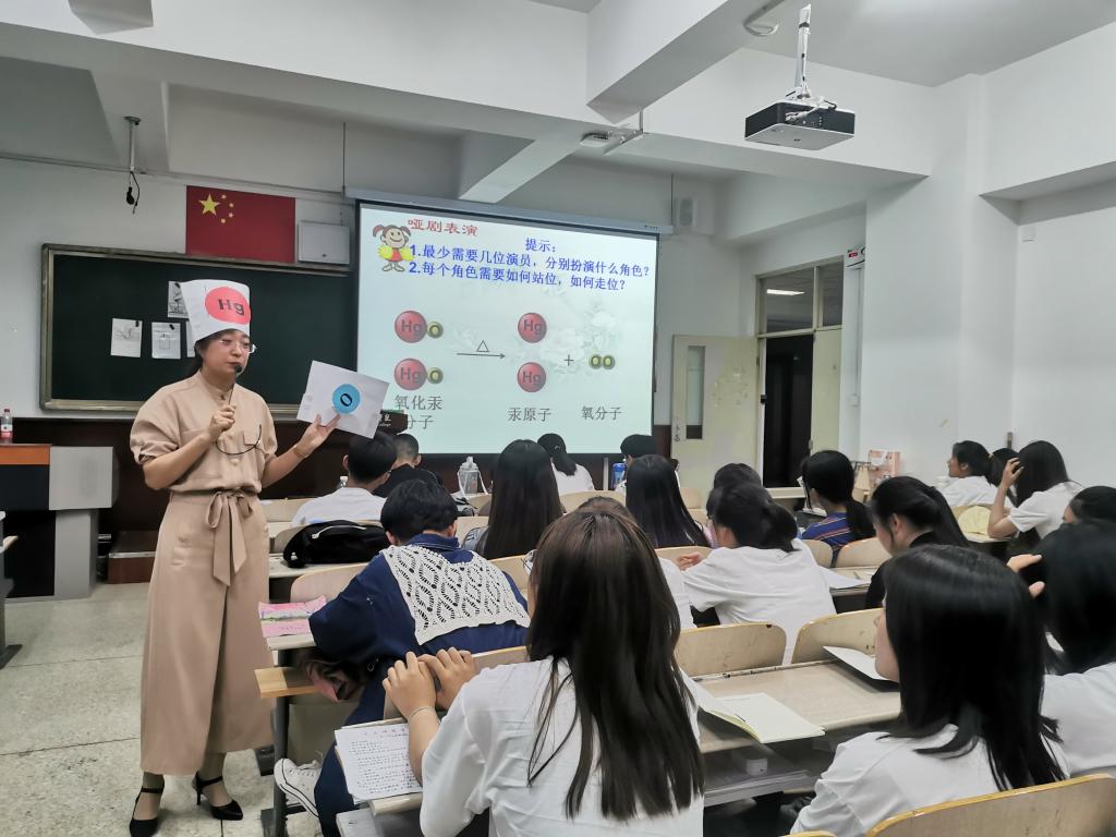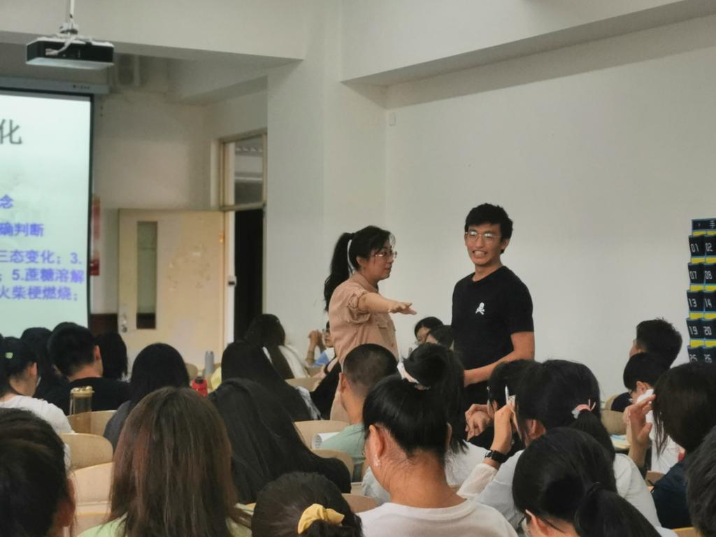 冯老师从教师的个人素养和教学基本功入手,结合大量的实际授课案例,用生动活泼的讲授,让同学们了解了如何提高学生学习化学的兴趣。她通过初中化学“物质的变化”这节课的模拟授课,向同学们展示了如何通过教师的层层引导,学生独立思考并总结出新知识。