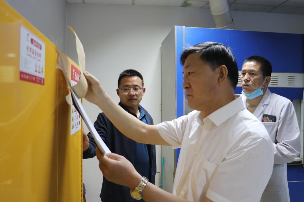 为深入贯彻习近平总书记关于安全生产重要论述及重要批示指示精神,落实自治区教育系统校园安全视频会议和学校2022年安全工作会议工作部署。5月27日上午,校党委施纪华副书记深入化学学院开展实验室安全管理与建设专题调研,实地巡查了各实验室及仪器设备和化学药品库等场地,详细了解实验室安全工作落实及仪器设备使用和运行状况。现场听取工作汇报、回应了工作中遇到的困难和问题并提出具体工作要求。