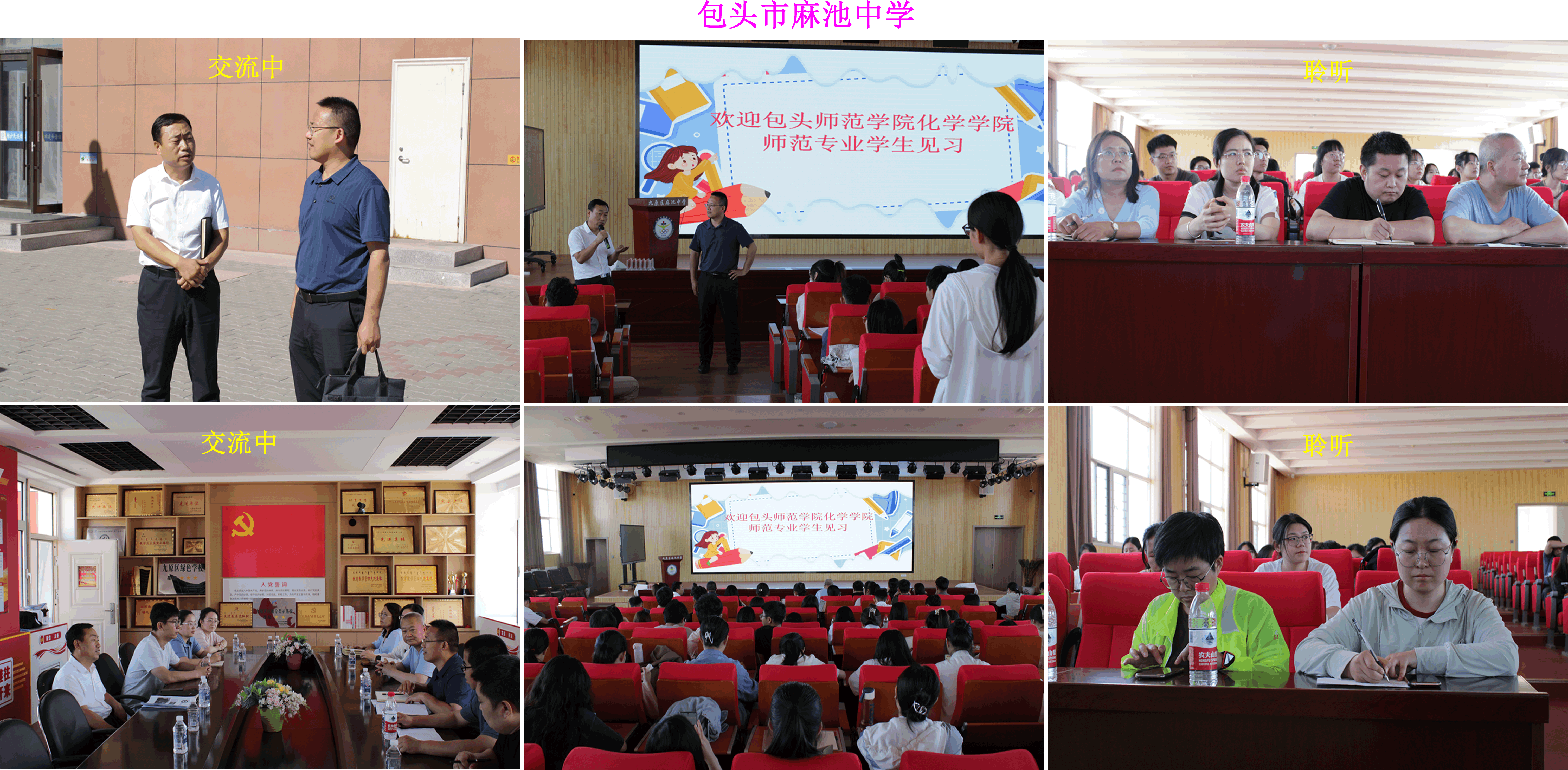 在包头市麻池中学,麻池中学校长介绍了学校的基本情况、办学特色(外来务工子女)、教师招聘以及今后学校的发展的蓝图,见习师生并就一些问题与麻池中学校长进行了现场交流讨论。调研过程中,并就化学师范专业教师教育课程设置进行了交流讨论。