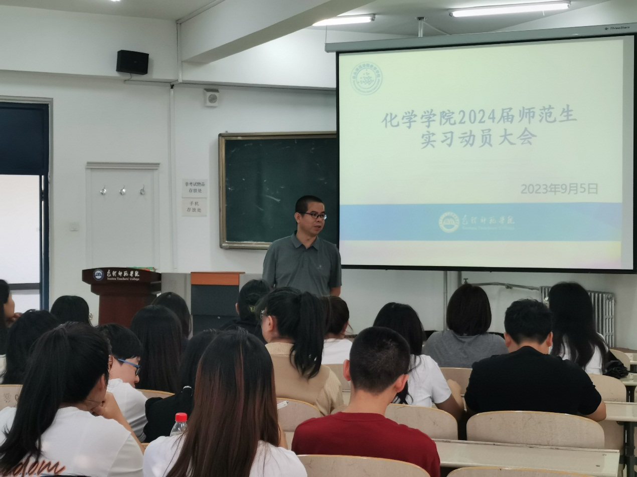 为了更好地开展化学学院20级学生的实习工作,2023年9月5日下午4点在我校博学楼东406,召开了化学学院2024届师范生实习动员大会。化学学院马学林副院长出席会议。20级化学专业一班和二班全体学生参加大会。