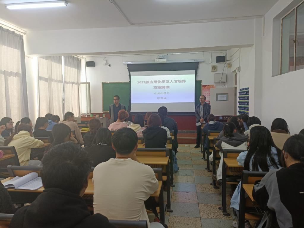 专业人才培养方案的解读是大学新生入学教育重要环节,是指导各专业学生人才培养的指挥棒,更是学生四年在大学生活、学习和做好人生规划的重要基石。化学学院组织各系室主任在第九周分专业分层次对2023级学生开展了人才培养方案解读工作。