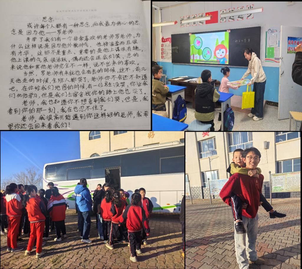 随着时间的推移,两个半月的支教生活渐渐接近尾声。校园里的树叶子已经落了大半,地上铺满了厚厚的一层金黄。在最后的告别会上,孩子们纷纷送上了自己亲手制作的小礼物。有写满祝福话语的卡片,有用彩纸折成的花朵,还有画着实习教师一起场景的画作。看着这些礼物,实习教师的心中满是感动和不舍。离别之际,实习教师给他们自己所带班级送上礼物,实习生和孩子们都流下了难舍难分的眼泪,当他们的老师踏上离别的大巴,孩子们再一次簇拥到老师身边,边哭边说:“老师,我舍不得您走,你们应该把我们带到毕业”。这段阳光支教经历,如同秋天的阳光,温暖而不炽热,却足以照亮实习教师和孩子们的心灵。它让实习教师看到了乡村教育的希望与美好,也让实习教师在付出中收获了成长与感动。实习教师知道,这两个半月的时光,将永远镌刻在实习教师的记忆深处,成为实习教师人生中宝贵的财富,孩子们的笑脸,也将如同秋天的枫叶,在岁月的长河中愈发鲜艳。(化学系主任)