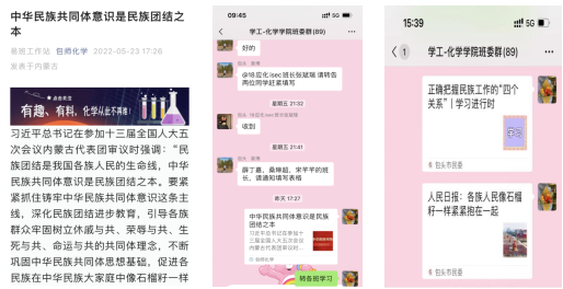 一、集中宣传助推“民族政策宣传月”活动。各项工作紧紧围绕铸牢中华民族共同体意识教育主线稳步推进。利用LED屏幕开展民族政策宣传工作,在班委微信群、“包师化学”公众号等推送民族政策知识学习的相关链接,全覆盖宣传党的民族政策,教育广大师生牢记习近平总书记的嘱托,全面贯彻落实党的民族理论和民族政策,深化民族团结进步教育工作,进一步激励全院师生为民族团结进步事业发展贡献力量,在全院上下营造了浓厚的教育氛围。
