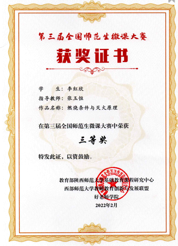 上一条:2022年第三届全国大学生化学实验创新设计大赛全国三等奖 下一条:2020年第二届全国师范微课大赛获奖视频