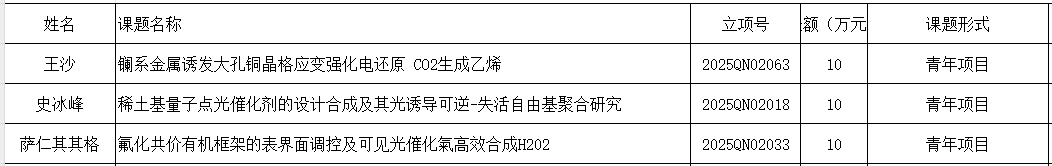 2025年包头稀土氟材料重点实验室王沙、史冰峰、萨仁其其格三位博士获批内蒙古自然科学基金青年项目,资助金额共计30万元。